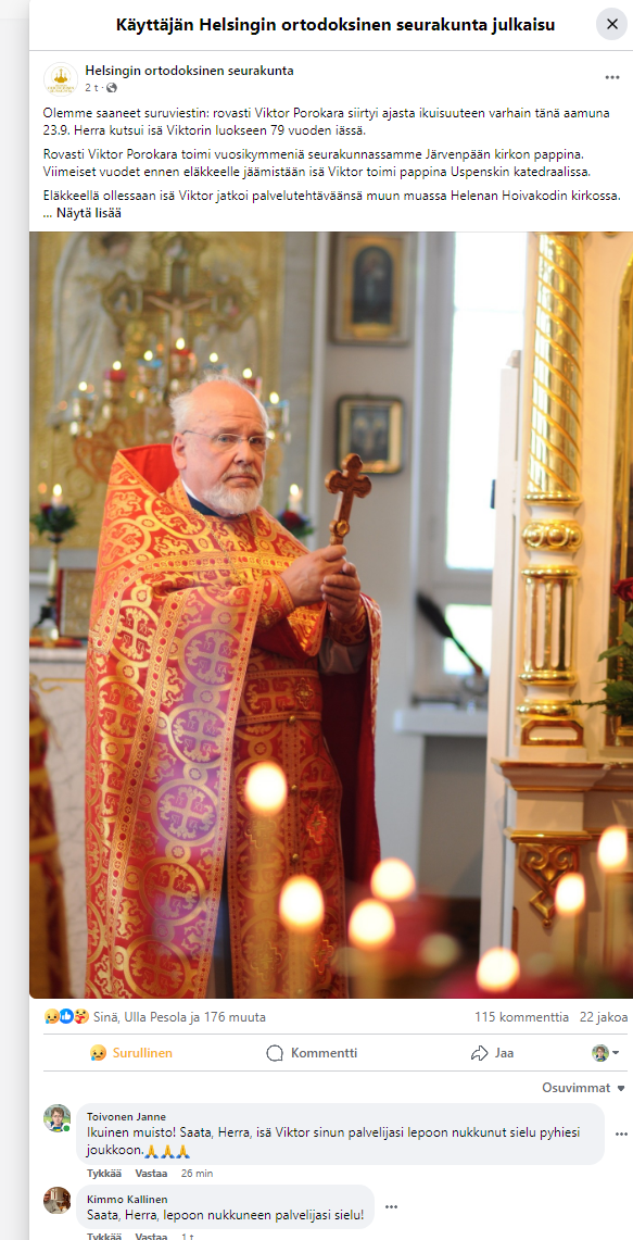 YouTube-linkki Isä Viktor 75v juhlan palvelus Järvenpään Ortodoksikirkossa: |